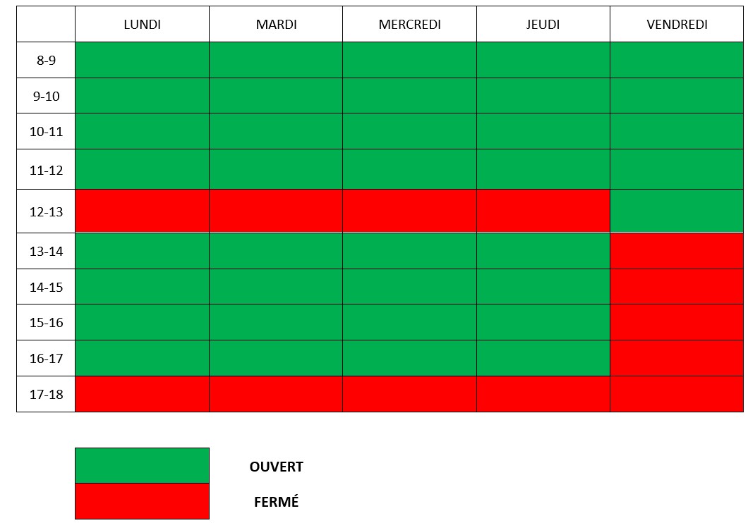 Les horaires d’ouverture du CDR